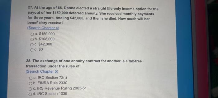 Solved 27 At The Age Of 68 Donna Elected A Straight Chegg Com